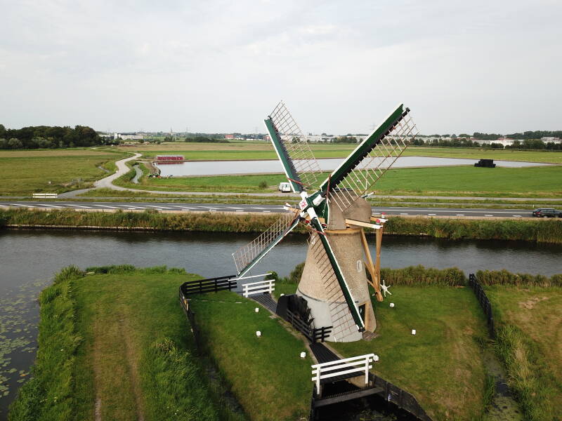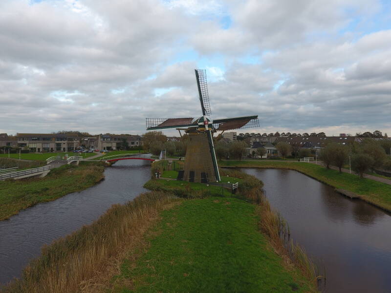 De meeste foto's zijn gemaakt met zowel de DJI Phatom 4 met de volgende camera-mogelijkheden: Schiet DCI 4K (4096x2160) video bij 24/25fps en UHD 4K (3840x2160) tot 30fps. Er is ook een 120fps modus in 1080p resolutie voor slow-motion effecten. De camera kan ook 12 Megapixel foto's nemen in DNG RAW of JPEG, met single shot, HDR, burst en time lapse modus om uit te kiezen. Foto links: Stevenshofjesmolen Leiden.